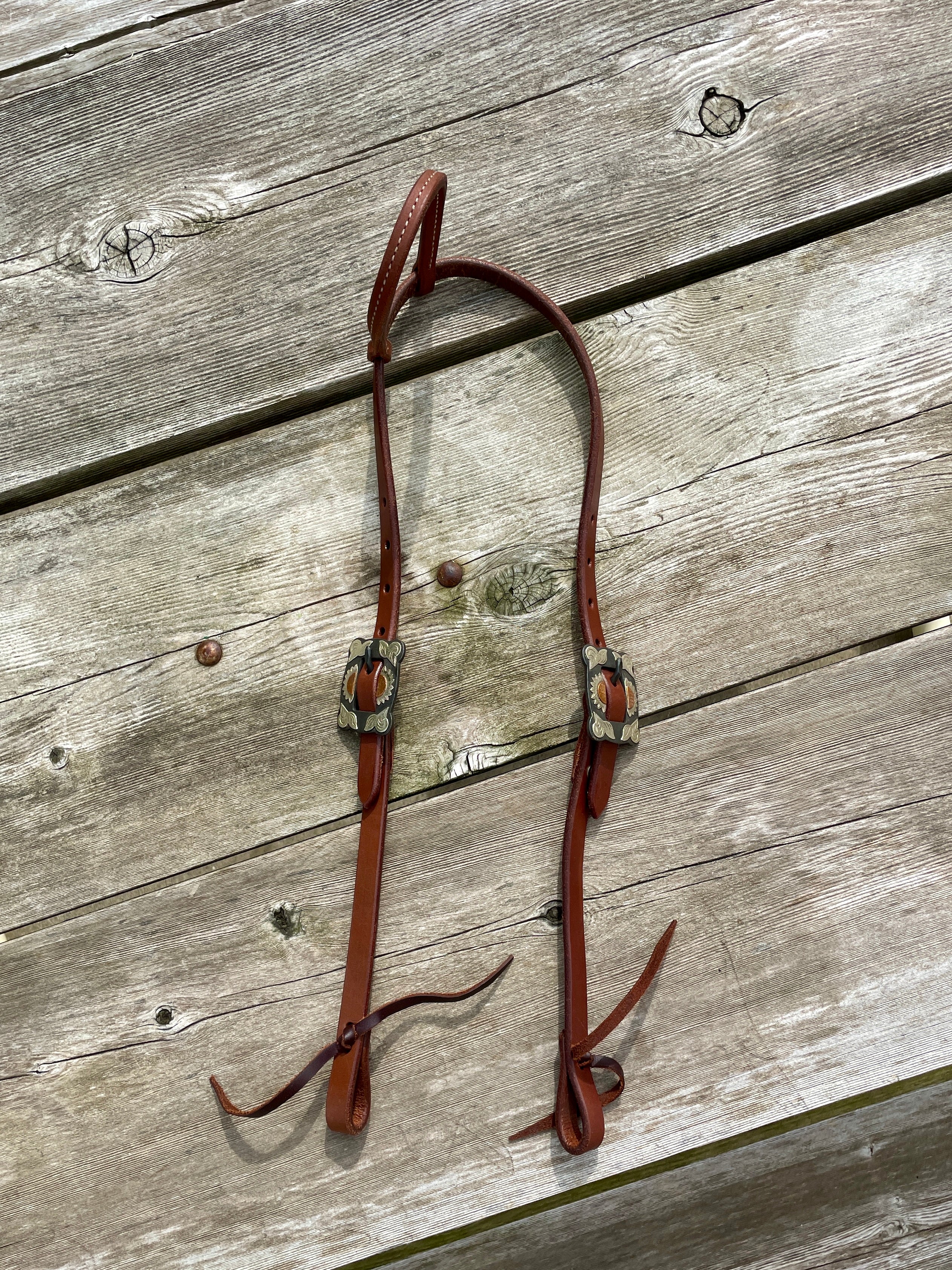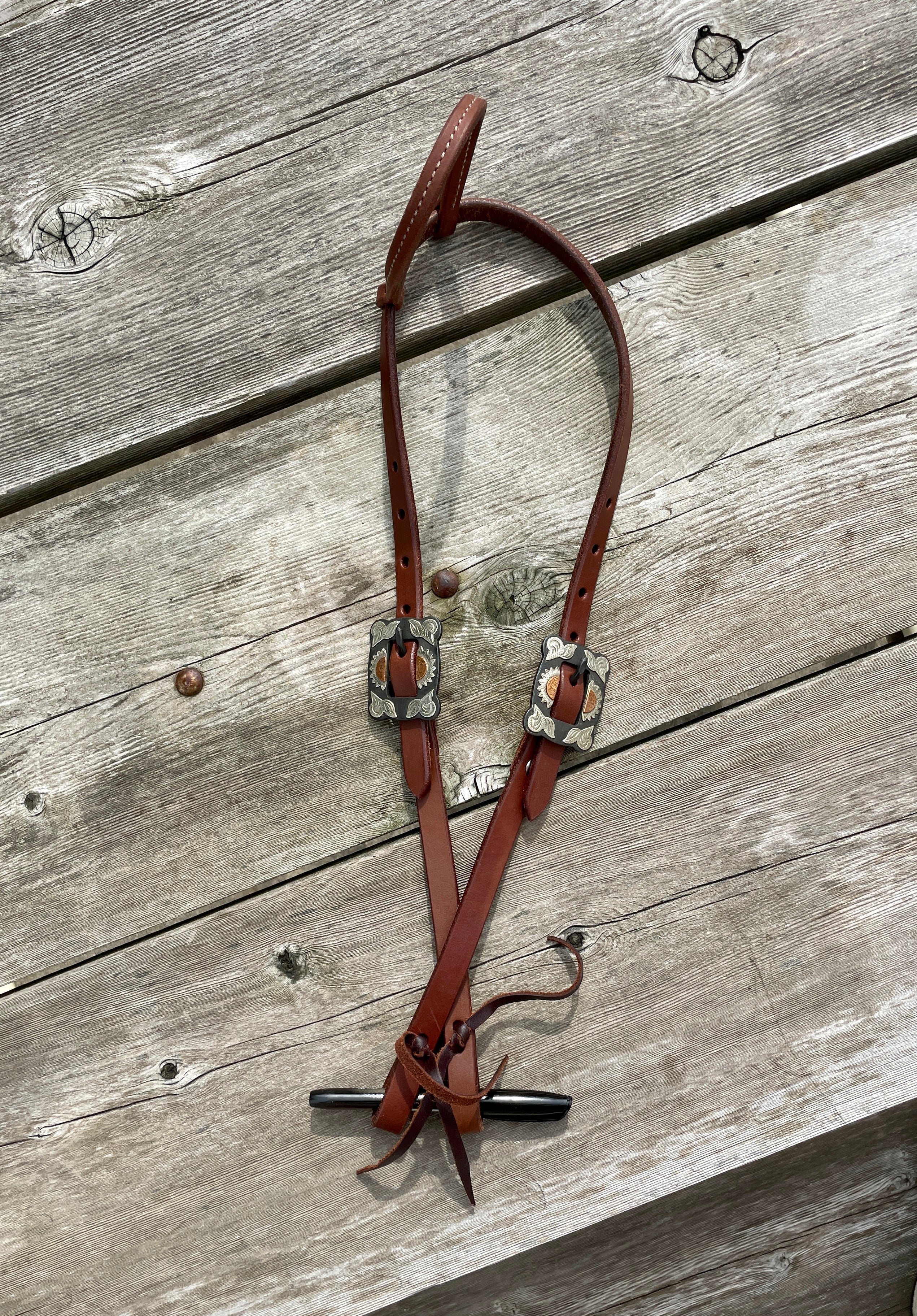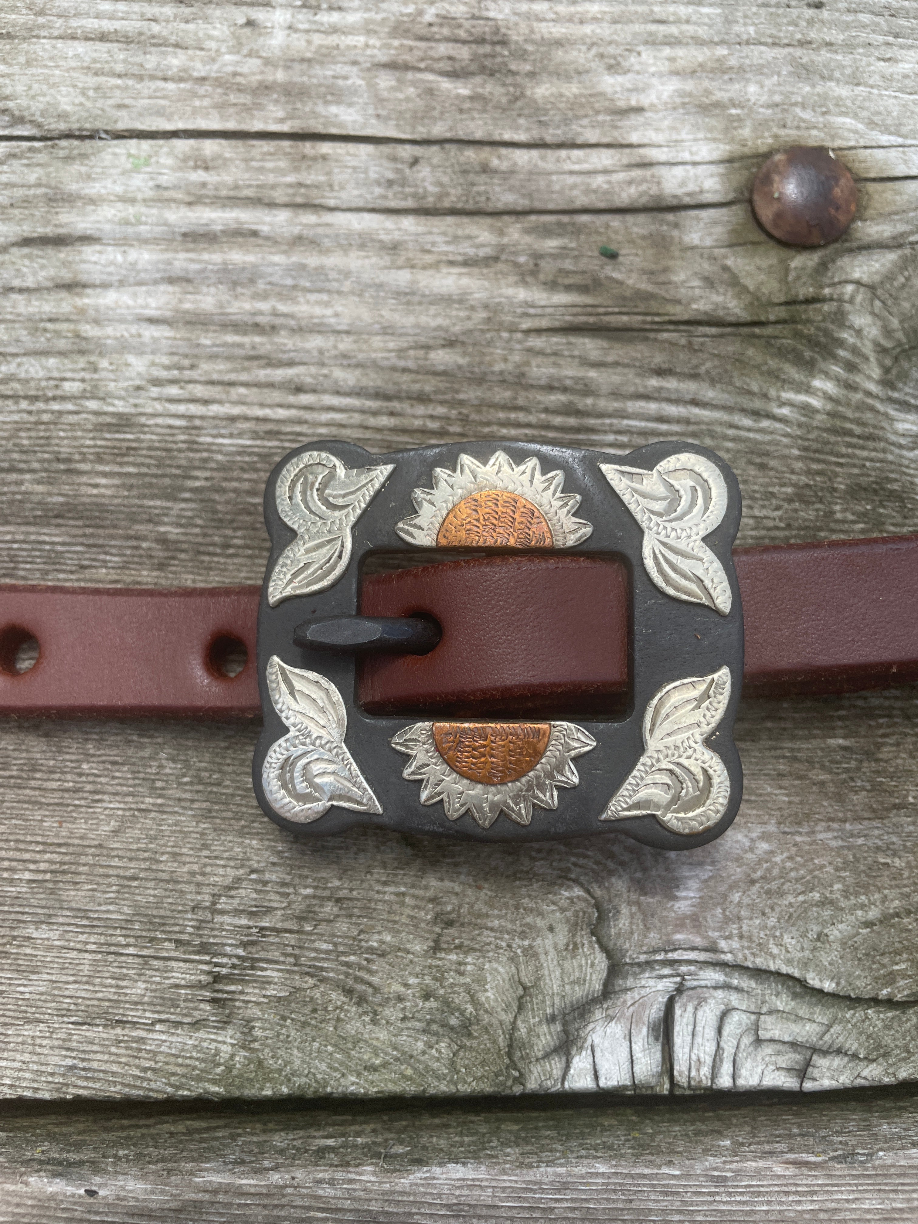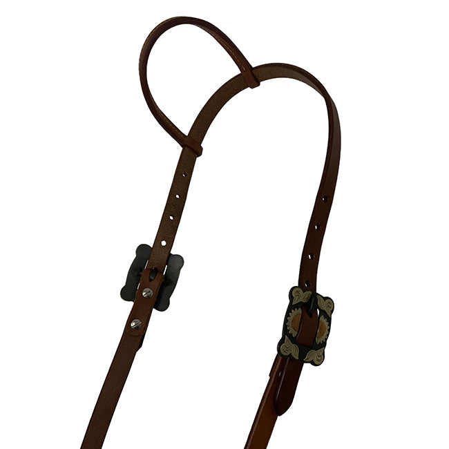 Oiled Harness Single Ear Headstall With Antique Sunflower Buckle
