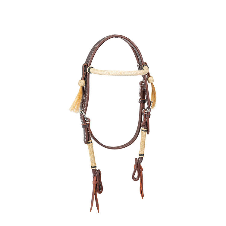 Pony latigo brow band headstall with rawhide and horse hair.