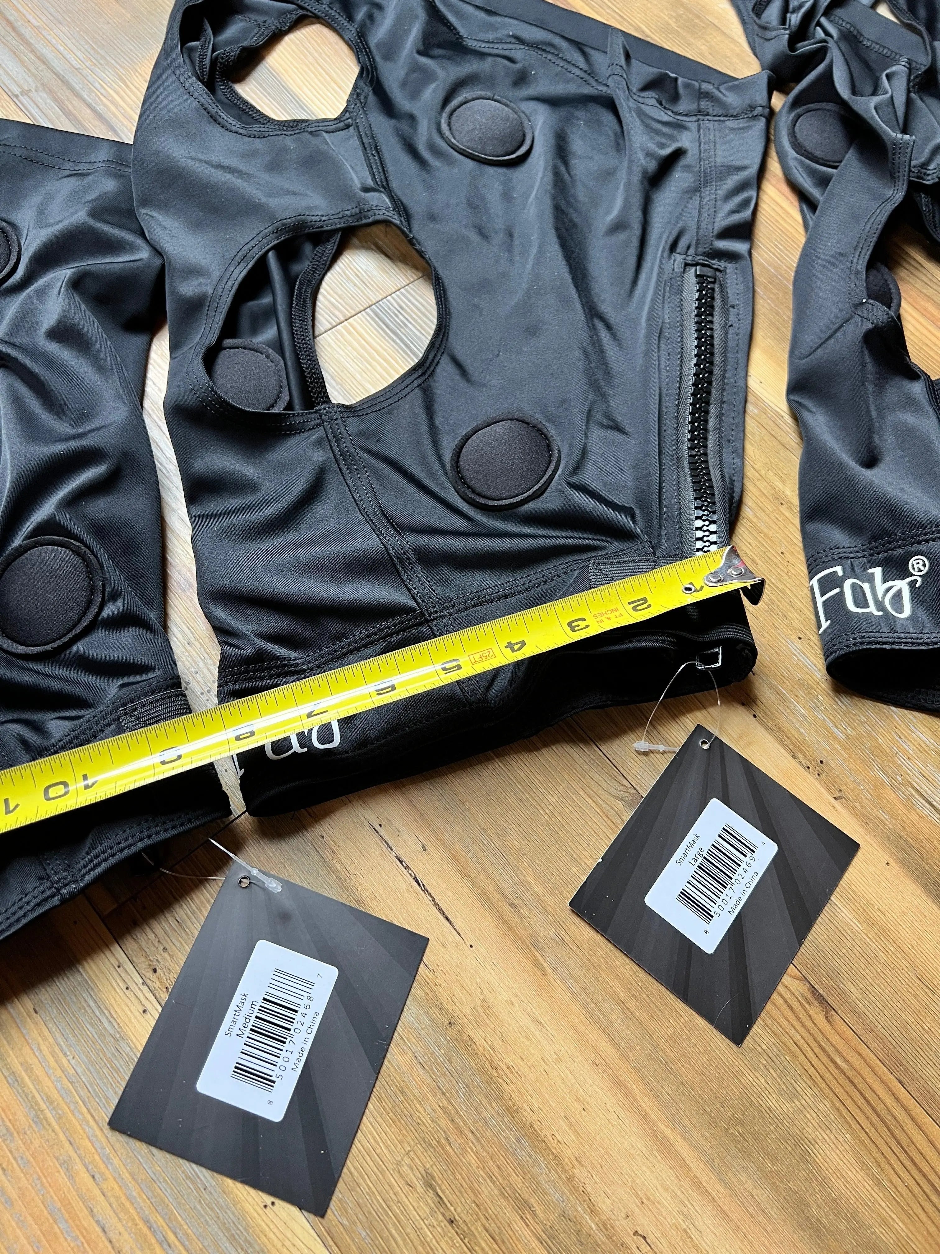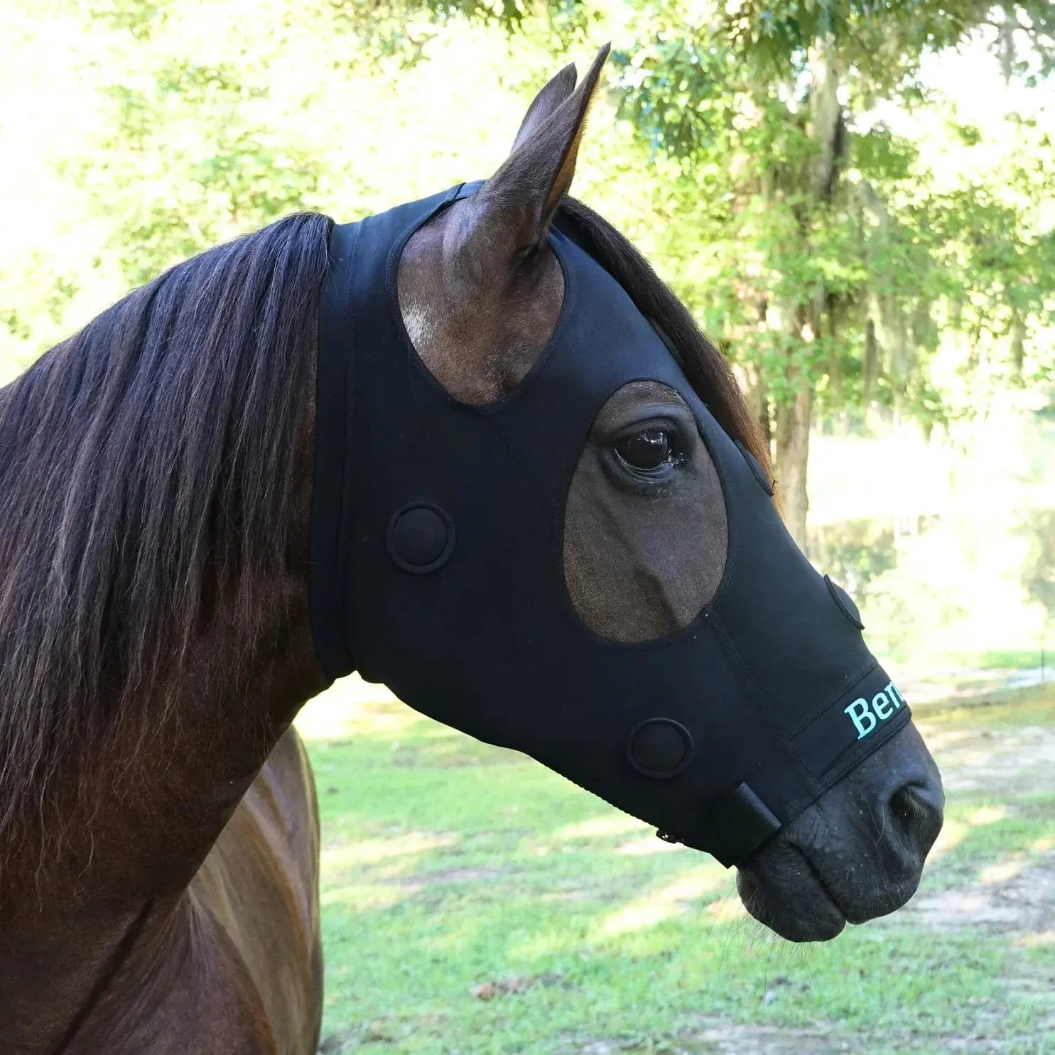 Convenient one-piece design that slips over the head, secured into place with a zipper under the jaw.