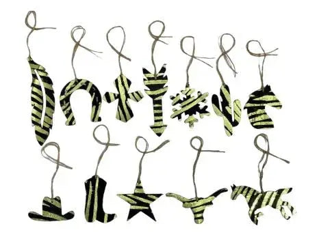 Green Zebra Leather Cowhide Christmas Ornament - Sold Individually