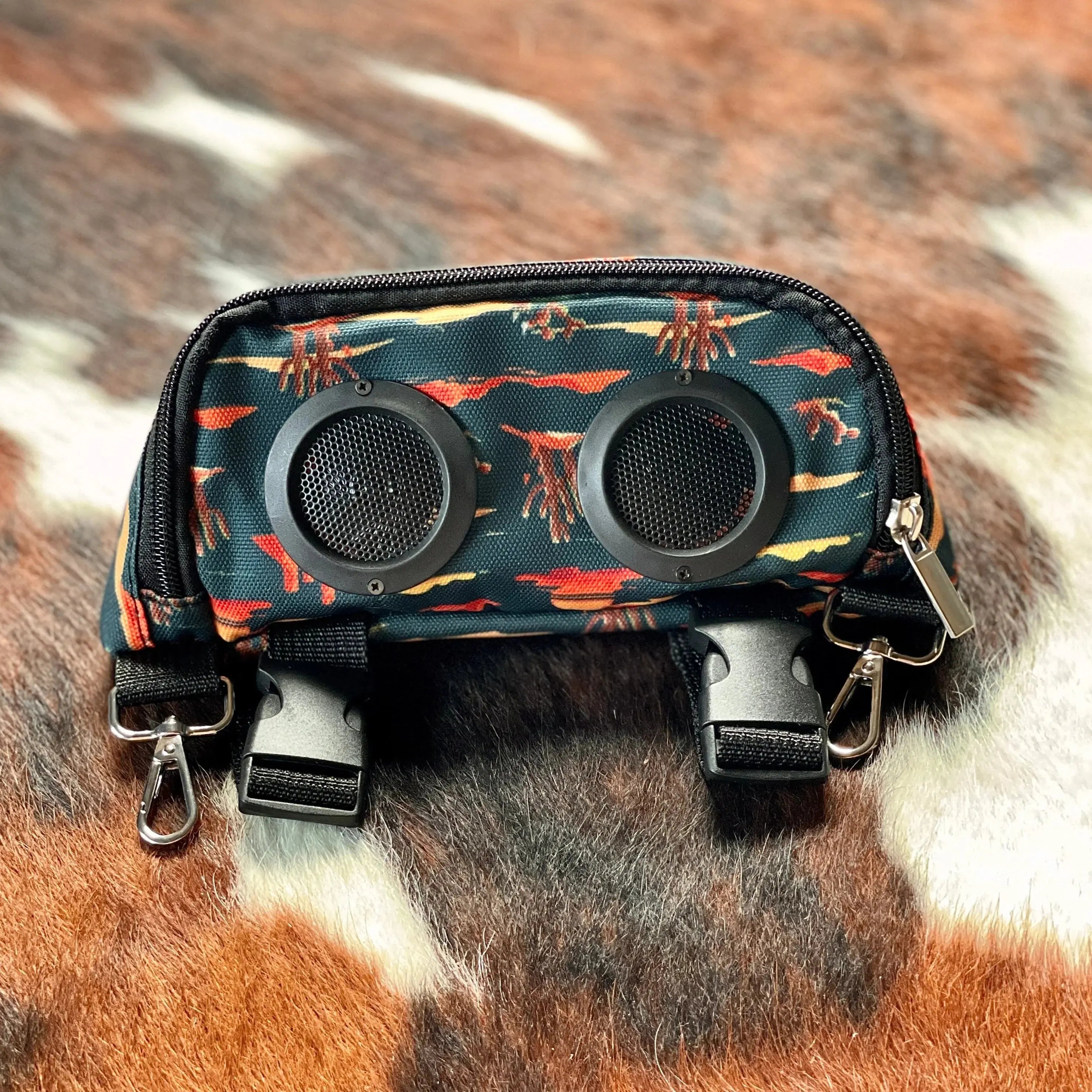 The ultimate riding accessory is here!!!! The Beat Bag is a saddle pouch equipped with 2 rechargeable blue tooth speakers ready to play your music or to amplify your coaches voice while riding.
