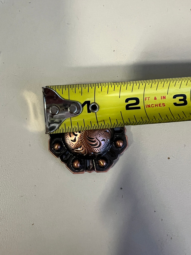 Copper octagon engraved concho with Screw. This copper octagon shaped engraved replacement concho measures 1-1/2" x 1-1/2".