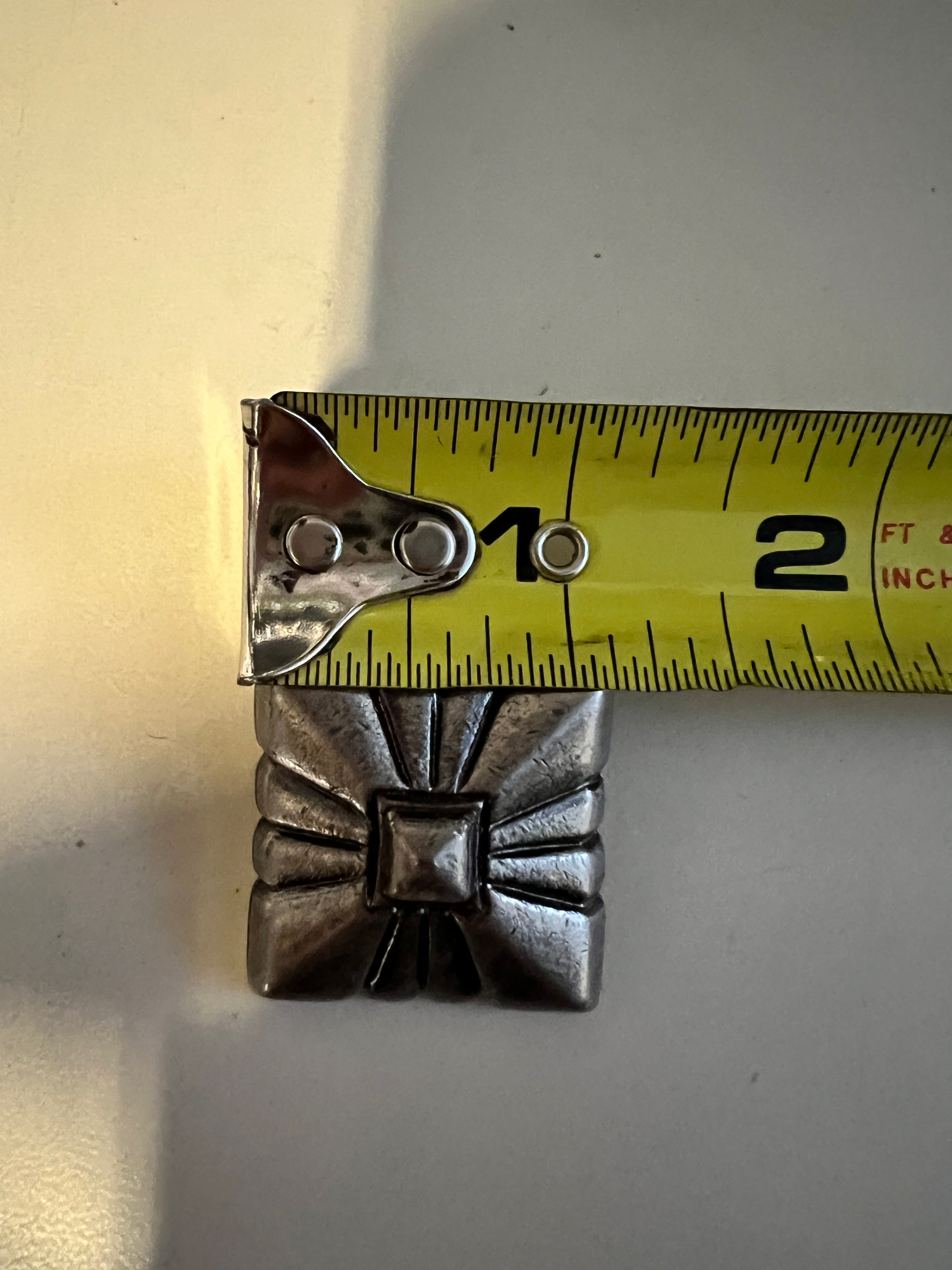 Silver pyramid embossed shape concho with Screw. This silver pyramid shape replacement concho measures 1" x 1".