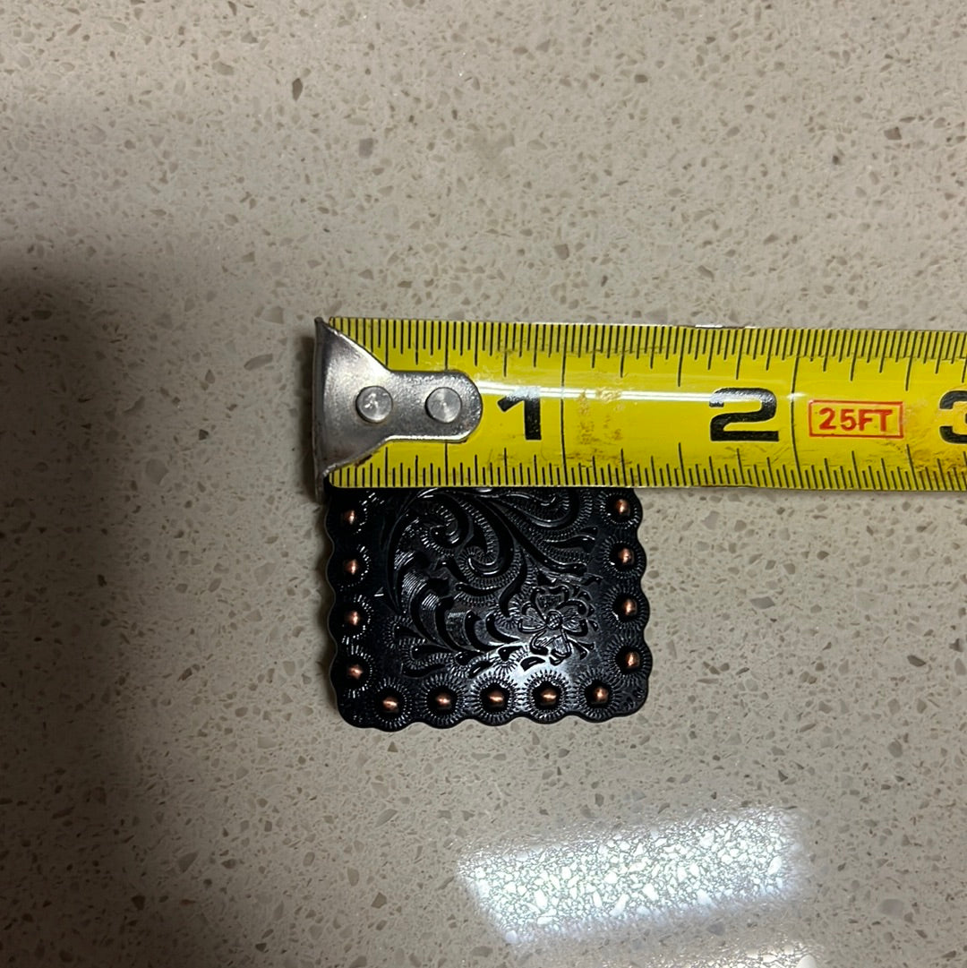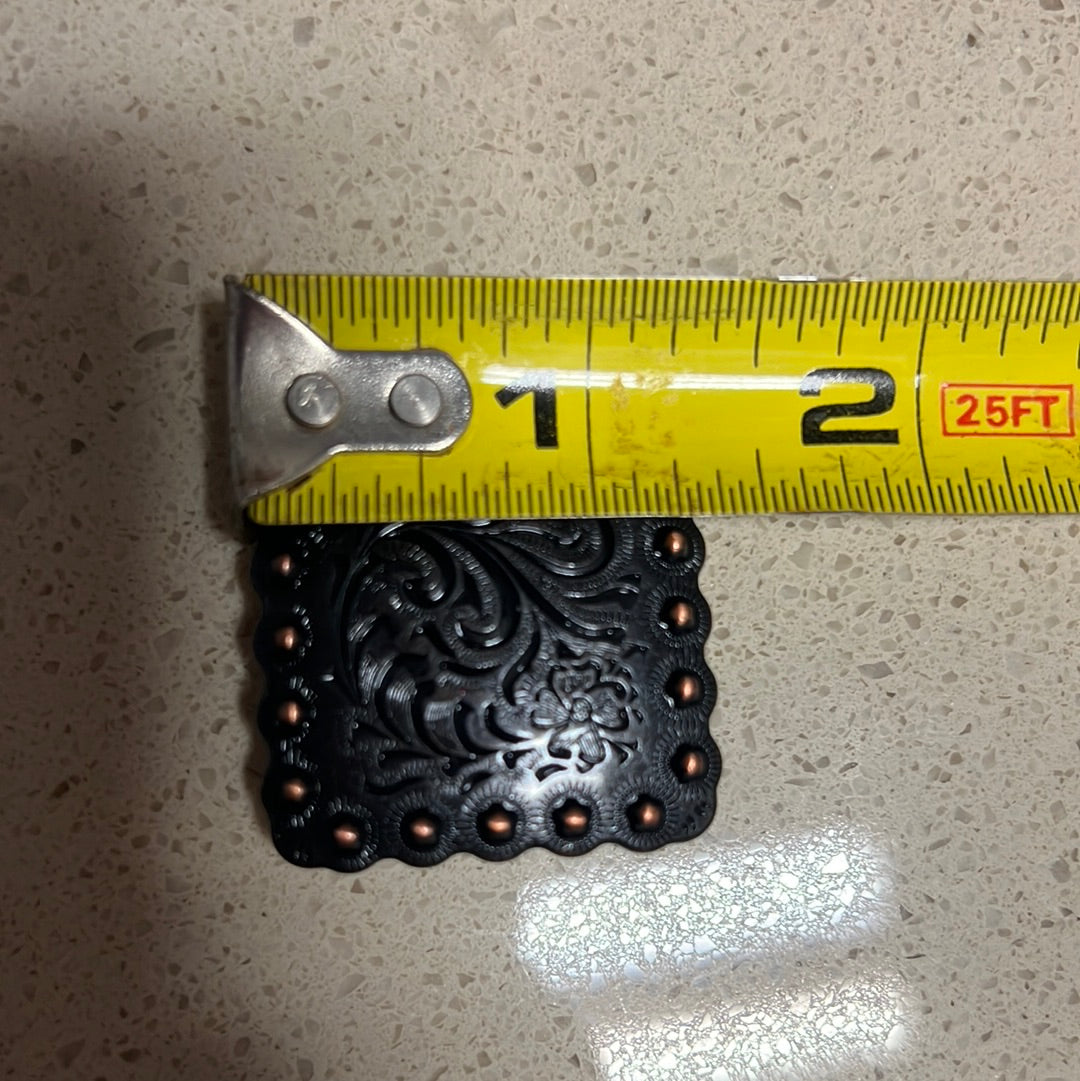 Copper engraved square concho with screw